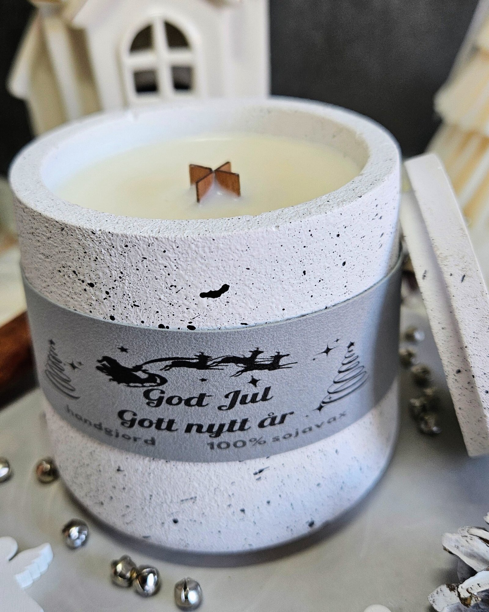 Doftljus i Skapa en varm och stämningsfull jul med detta handgjutna sojaljus i en elegant gipsbehållare med lock.